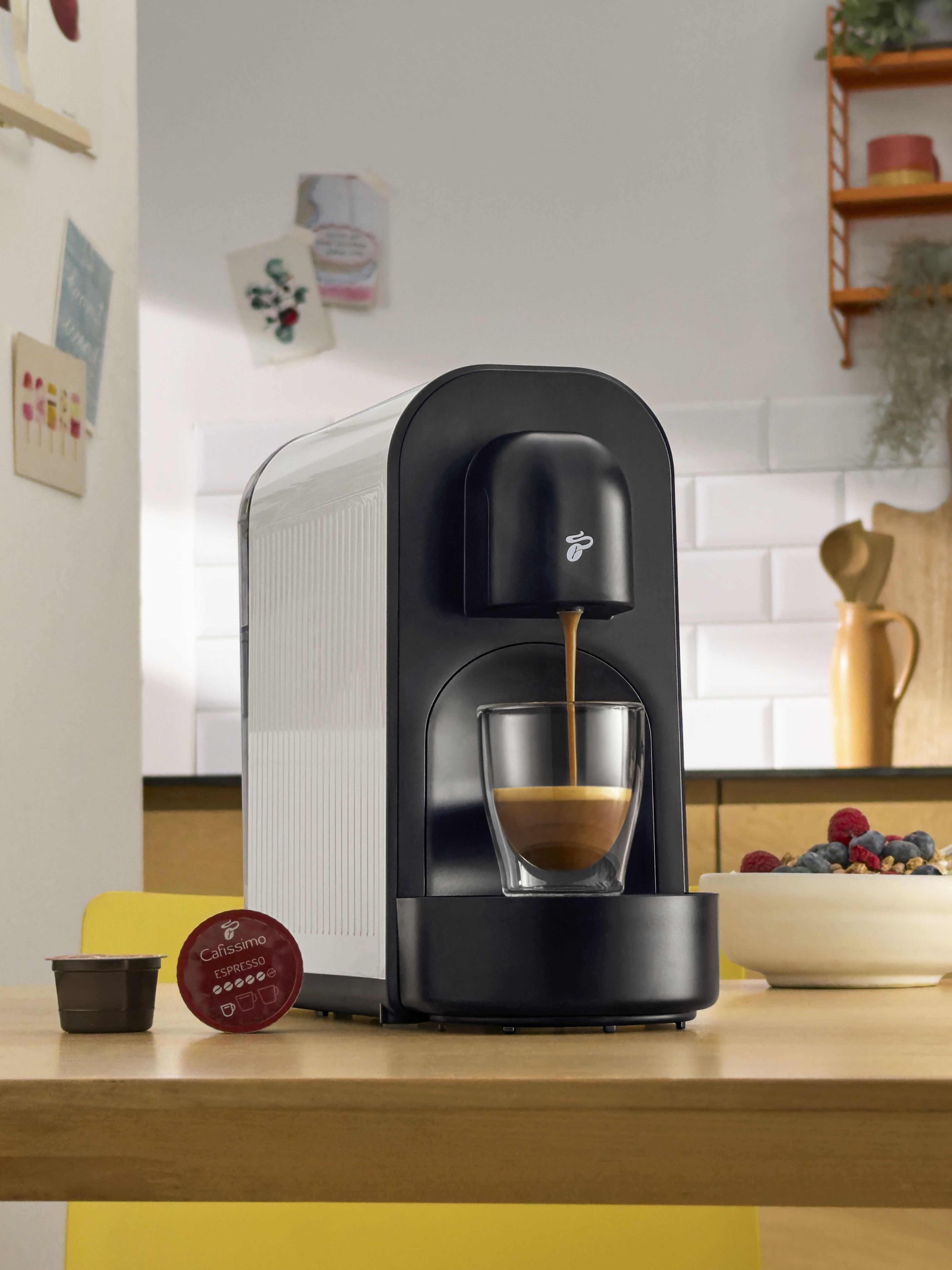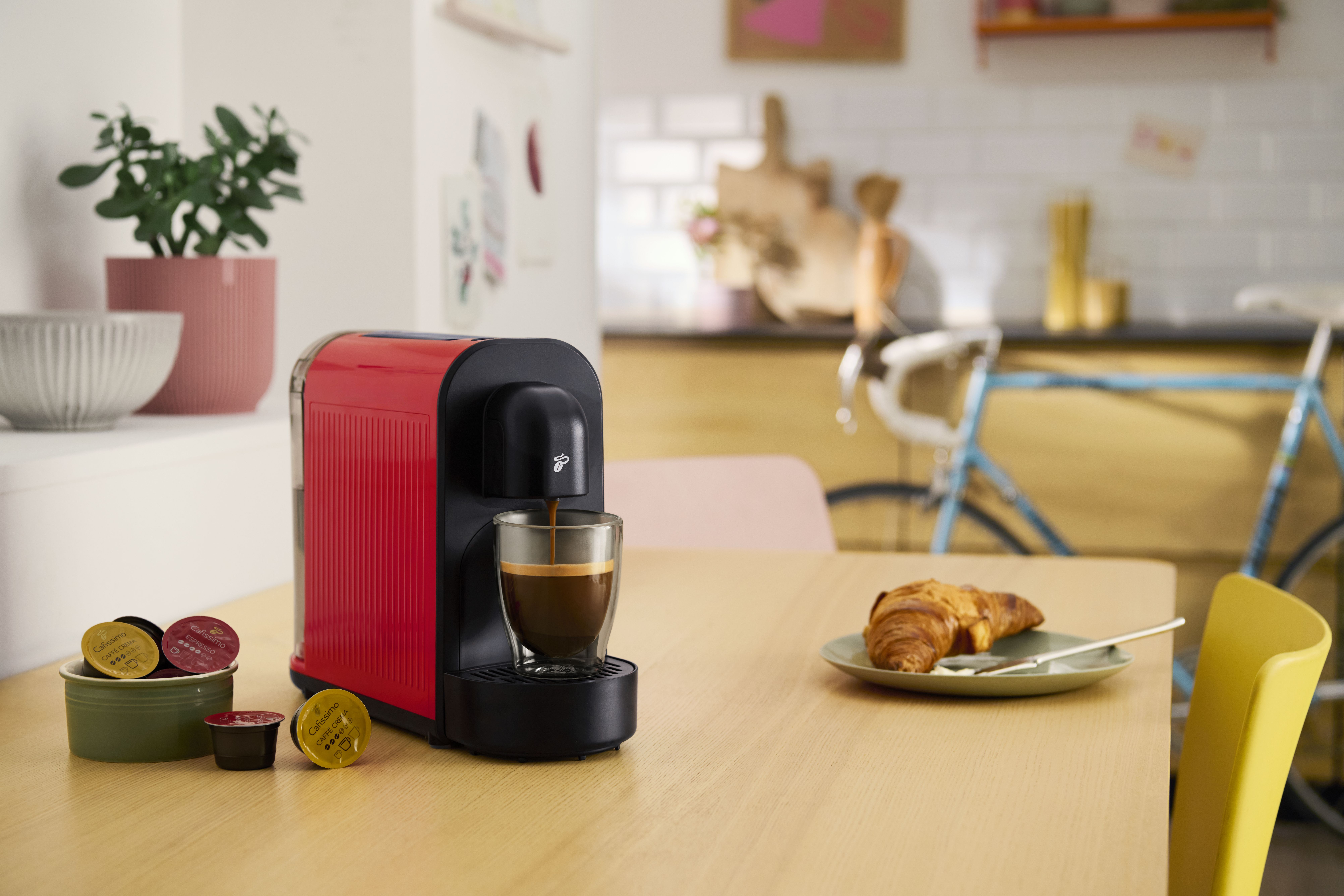 01. Cafissimo pure+ Limited Edition in der frischen Farbe "Lemon Splash". Verfügbarkeit: ab sofort, um 49 €, in allen Filialen und auf tchibo.at