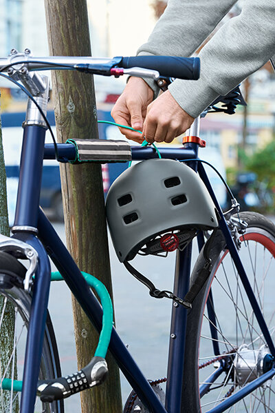 Das Fahrrad mit einem Schloss abzusperren ist in der Stadt besonders wichtig – dabei wird das Rad immer an- und nicht nur abgeschlossen: Rahmen und Vorderrad immer an einen festen Gegenstand befestigen.