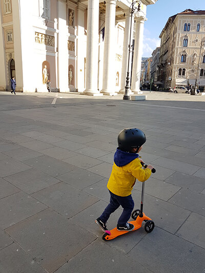 Mit einem kleinen Handgepäckskoffer und vielen schon sommerhaften Kleidungsstücken in petto machten wir uns auf den Weg. Um 21:27 Uhr ging die Fahrt los, angekommen sind wir pünktlich um 8:30 Uhr in Triest. Nach einem schönen Halbtag in Triest, wo Nunu fleißig mit seinem Scooter die Stadt erkundet hat und ich dabei italienischen Kaffee genoss, trafen wir uns mit meinen Eltern, die ebenfalls gerade in Italien waren und uns mit nach Grado nahmen.