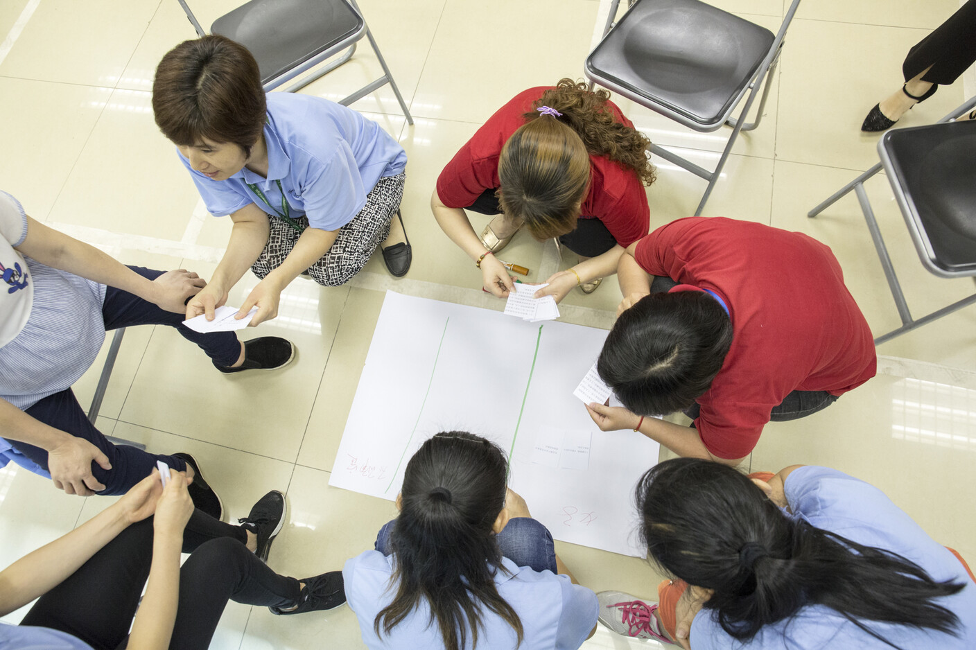 Gemeinsam mit den WE Facilitator*innen setzen sich die Teilnehmer*innen damit auseinander, wie ihr Arbeitsplatz und ihre Beziehungen zueinander in Zukunft aussehen sollten, anstatt ihren Blick ausschließlich auf die bestehenden Probleme zu verengen. Dieser Ansatz eröffnet ihnen neue Wege, ihre Realität zu verändern. Wir unterstützen sie dabei, alle Lösungen zusammen zu erarbeiten. Der Prozess nimmt Zeit in Anspruch. Gleichzeitig zeigt unsere Erfahrung, dass die Beteiligten nötige Veränderungen an ihrem Arbeitsplatz auf diesem Weg am besten umsetzen können.