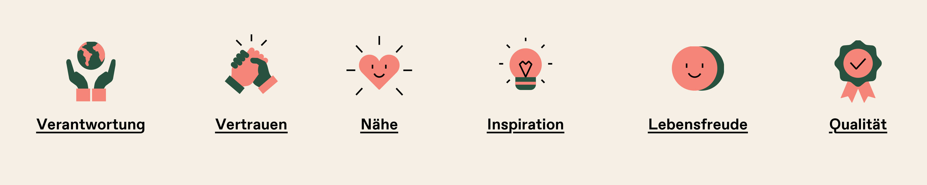 Das Fundament unseres Handelns sind unsere Werte: Verantwortung, Vertrauen, Nähe, Inspiration, Lebensfreude und Qualität sind die Leitwerte, aus denen wir die Kriterien für unser Handeln im Bereich Nachhaltigkeit ableiten.