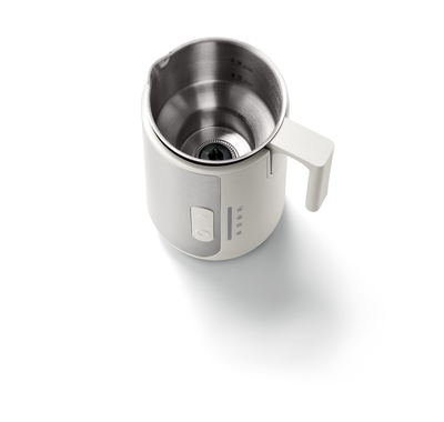 Überarbeitet und vereinfacht wurde auch die Bedienung. Grafische Icons beschreiben die verschiedenen Programmfunktionen, große Bedienköpfe machen die Navigation zwischen den Programmen intuitiver. Auf Kundenwunsch hat der Induktions-Milchschäumer auch ein Facelift bekommen. Das neue Design ist deutlich schlanker und moderner als bisher. Und mit seiner spitzen Nase lässt sich die Milch außerdem so präzise eingießen, dass damit sogar Latte Art gelingt.