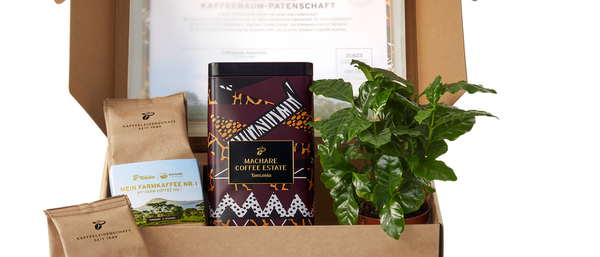 Kaffeegenuss, der Wurzeln schlägt – mit der Kaffeebaum-Patenschaft von Tchibo gibt es exklusiven Farm-Kaffee für zuhause direkt von der Kaffeefarm „Machare Coffee Estate“ in Tansania. Und nicht nur das, denn die Patenschaft ist weit mehr als nur leckerer Kaffee: 10 Euro pro Patenschaft fließen in ein Sozialprojekt der indigenen Chagga-Kleinbauernfamilien, um deren Existenz zu unterstützen und das kulturelle Erbe zu erhalten. Zur Patenschaft gehört ein ganzes Paket: Neben 2 x 250 Gramm Arabica-Bohnen des ersten Farm-Kaffees und einem Zertifikat zur Baumpatenschaft enthält es eine informative Broschüre sowie eine eigens von Farm-Mitarbeiter Joshua designte Kaffeedose. Ebenfalls im Paket: eine Kaffeepflanze für den Anbau zuhause. Ein monatlicher digitaler Newsletter, das Farmtagebuch, informiert die Kaffeebaum-Paten exklusiv über den Alltag auf der Farm, die Menschen, das Handwerk und vieles mehr. Die Patenschaft kann man sich selbst schenken oder anderen ein besonderes Geschenk machen. Denn genussvoll wird es sowieso: Der erste Farm-Kaffee begeistert mit seinen fruchtigen Noten von roten Beeren, Datteln und Macadamia.