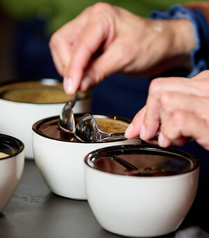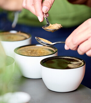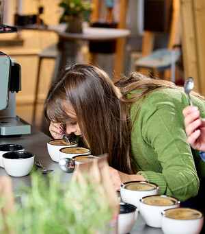 Beim sogenannten Cupping probierten die Teilnehmenden Kaffees, die die Nachhaltigkeitsphilosophie von Tchibo verkörpern: