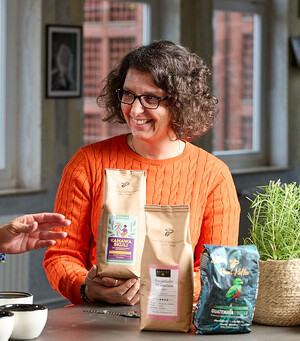 Dazu gab uns Aida, Nachhaltigkeitsmanagerin im Bereich Corporate Responsibility Coffee, Einblicke in die Tchibo Nachhaltigkeitsstrategie. Sie berichtete von unserem Kaffeeprogramm in den Ursprungsländern, in denen Kleinfarmer und Kleinfarmerinnen unterstützt, faire Arbeitsbedingungen geschaffen und Anbaumethoden verbessert werden.