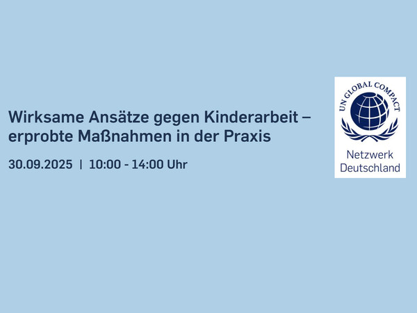 Our colleague Julia is a speaker at the event "Effective Approaches to Combating Child Labor – Proven Measures in Practice," organized by UNICEF Germany and the UN Global Compact Network Germany, and will present examples from our non-food, cotton, and coffee supply chains.